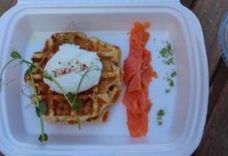 Сырные вафли с лососем и яйцом-пашот