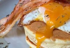 Панкейки с яичницей, беконом и мёдом