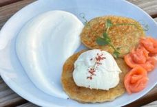 Драники с лососем и яйцом-пашот